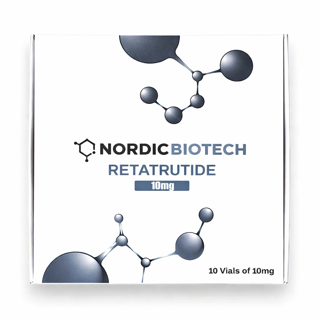 Retatrutide is supplied in a presentation of 10 vials, each containing 10 mg of lyophilized powder, ensuring precise dosing consistency and convenient handling for laboratory and research applications.